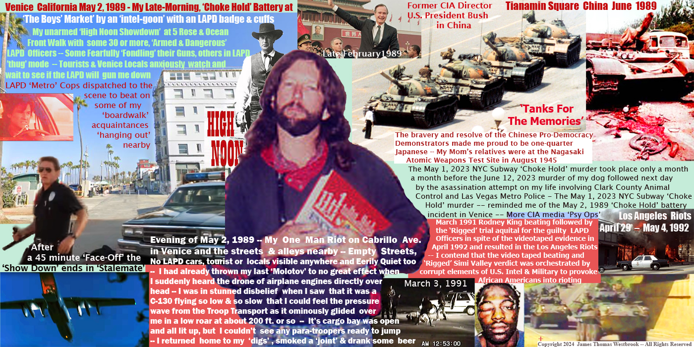 This is reminiscent of the way the police units and helicopters were all over my ass for hours on the day of the attempted assassination of Congress Woman Giffords and murders of her associates on January 8, 2011 as took buses, subways and bicycled throughout L.A. and L.A. County that day until dusk. -- From what I understand Giffords' was virtually lobotomized.