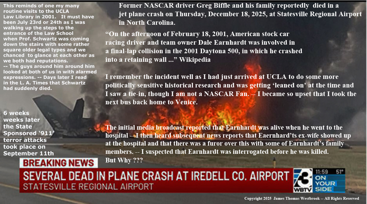 Post World War II, then current undeclared Korean War era during the start of U. S. National Security State and the rabidly Anti-Communist McCarthy Era.This latest, in a series recent of assassinations mislabled as in the multi-national, corporate mass media outlets seem to follow the progress I have made in the creation of this website all the way from Oakland, California, the University of Kentucky, Providence, Rhode Island, and the Northeast U.S., including the 'hit' on the MIT professor December 15, 2025 have prompted me to make this pre-mature website posting, just in case.